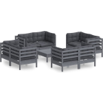 Vidaxl 9-delige Loungeset Met Antracietkleurige Kussens Grenenhout - Grijs