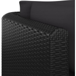 De tuinbankset is gemaakt van duurzaam handgeweven PE-rattan over een gepoedercoat stalen frame, waardoor de set sterk, stevig en weerbestendig is. De loungeset is eenvoudig te reinigen en geschikt voor dagelijks gebruik.