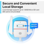 Met een microSD-kaartsleuf kun je eenvoudig tot 128 GB aan beelden lokaal opslaan in 3 MP. Dit zorgt ervoor dat je altijd en overal toegang hebt tot je video's.