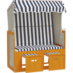 Vidaxl Strandstoel Met Luifel Poly Rattan En Massief Hout En Blauw - Wit