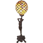 Clayre & Eef Lumilamp Tafellamp Tiffany 21*21*51 Cm E14/max 1*25w Meerkleurig Polyresin / Glas Vrouw 5ll-6024 - Geel