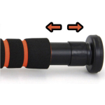 De deuroptrekstang is gemaakt van duurzaam staal en is voorzien van zachte schuim handvatten, waardoor je een comfortabele en stevige grip hebt tijdens je training. De stang kan eenvoudig tussen de deurpost gemonteerd worden door de draaibare uiteinden met vrouwelijke schroefdraad uit te trekken en met twee schroeven vast te zetten.
