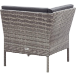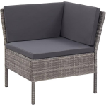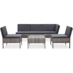 Deze tuinset is zeer eenvoudig te monteren en wordt geleverd in een prachtige grijze en antraciete kleurstelling. De salontafel heeft afmetingen van 60 x 60 x 35 cm (L x B x H),terwijl de afmetingen van de middenbank 57 x 69 x 67 cm (B x D x H) zijn, met een zithoogte van 35 cm. De hoekbank heeft dezelfde afmetingen als de middenbank. De set wordt geleverd inclusief 5 zitkussens, 6 rugkussens, 1 salontafel, 1 hoekbank en 4 middenbanken.