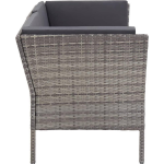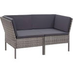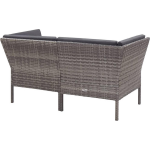 De set is gemaakt van hoogwaardig poly rattan materiaal in een stijlvolle grijskleurige afwerking. Het stalen frame is gepoedercoat, waardoor het duurzaam en weerbestendig is. Dit zorgt ervoor dat de set bestand is tegen alle weersomstandigheden en dus perfect is voor buitengebruik.