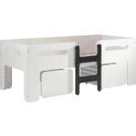 Een opvallend kenmerk van de Luca halfhoogslaper is de stevige, rechte trap. Dit zorgt voor stabiliteit en gemak bij het betreden van het bed. Bovendien wordt dit bed geleverd inclusief twee handige opbergbakken op wielen, ideaal voor het opbergen van speelgoed en knuffels. De lattenbodem is inbegrepen en het bed is geschikt voor een matras van 90x200, die apart kan worden besteld.
