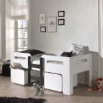 Speciaal ontworpen voor jongere kinderen, is de halfhoogslaper Luca van Vipack een veilige en praktische keuze. Dit kinderbed is voorzien van uitvalbeveiliging, zodat jouw kind veilig kan slapen. Gemaakt van afgelakt MDF met kindvriendelijke lak, past dit bed perfect bij elke kleur muur in de kinderkamer.
