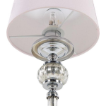 Een tijdloos accessoire voor jouw woon- en werkgebiedHaal elegantie en charme in huis met deze prachtige tafellamp met roze lampenkap. De lange, slanke hals en de halfronde poot van zilverglazen geven deze lamp een unieke uitstraling. Het contrast tussen de glanzende elementen en de matte, roze stof van de kap zorgt voor een stijlvolle en tijdloze look. Of je nu extra verlichting nodig hebt voor je woonkamer, slaapkamer of ka... lees meer over dit product