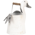 Voeg een vleugje charme toe aan jouw tuin met de wit metalen vintage gieter in de vorm van een eend van het merk Clayre & Eef. Met zijn unieke ontwerp is deze gieter niet alleen een functioneel hulpmiddel, maar ook een prachtige decoratieve toevoeging aan jouw buitenruimte.