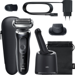 De doos bevat niet alleen het Braun Series 7 elektrische scheerapparaat, maar ook een precisietrimmeropzetstuk voor het perfect bijwerken van je snor en bakkebaarden. Daarnaast wordt een SmartCare Center meegeleverd, dat je scheerapparaat hygiënisch reinigt, smeert en oplaadt. Ook wordt een reisetui en een Smart plug voor automatische aanpassing aan 100-240 voltage bijgeleverd. Het handige EasyClick-systeem maakt het bovendien mogelijk om eenvoudig accessoires te wisselen.