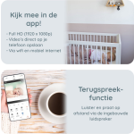 Deze smart babyfoon beschikt over een HD-camera, waardoor je kunt genieten van uitstekende beeld- en geluidskwaliteit. Zelfs in het donker heb je een helder beeld dankzij de nachtzichtfunctie. De compacte camera is eenvoudig te bevestigen op vrijwel elke plek met de meegeleverde 3M sticker.