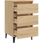 De nachtkastjes hebben stevige metalen poten die zorgen voor een stabiele en duurzame constructie. Met een afmeting van 40 x 35 x 69 cm (B x D x H) passen ze perfect naast je bed en vormen ze een harmonieus geheel met de rest van je meubels.