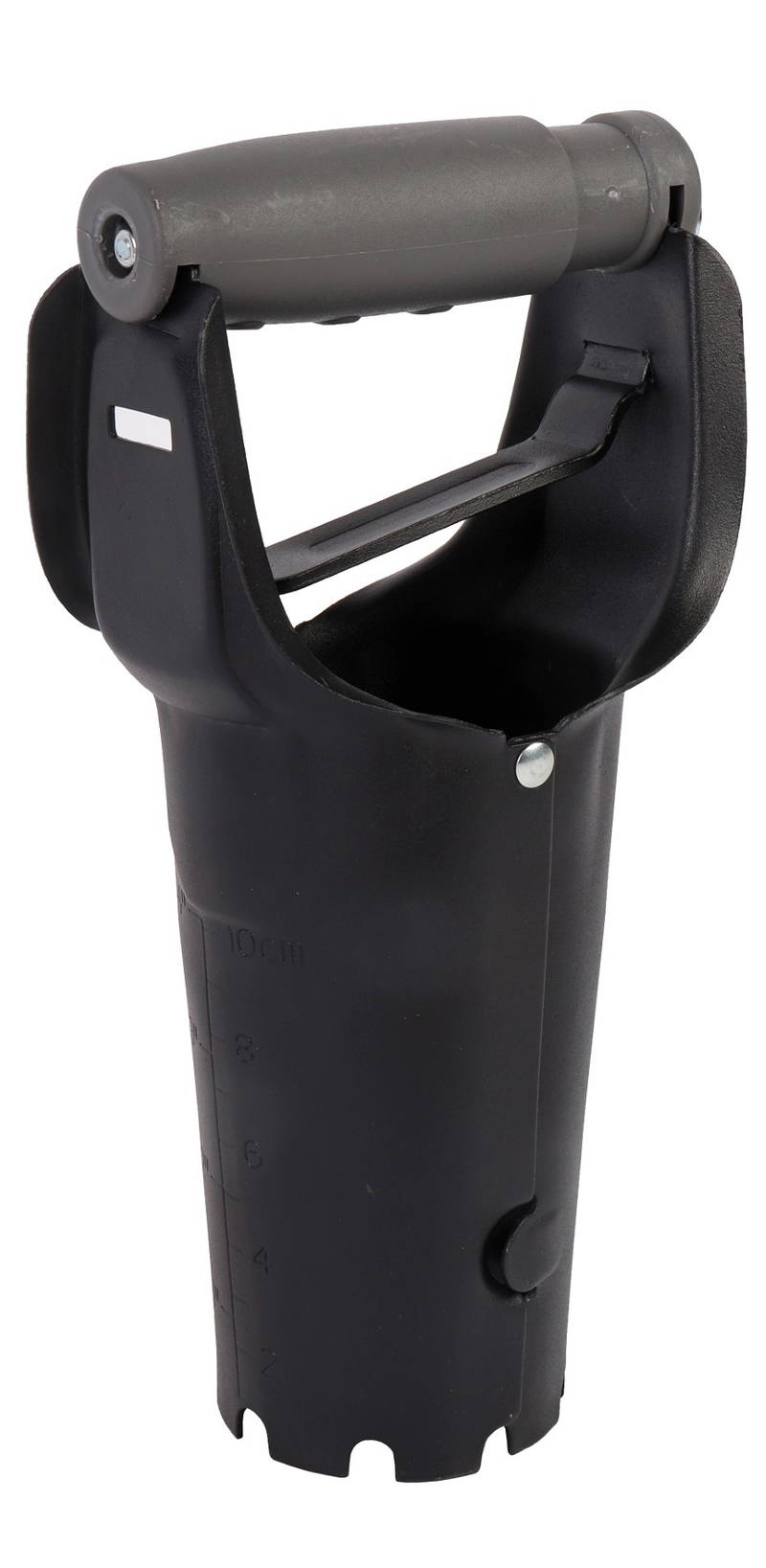 Het bovenste gedeelte van de bollenplanter is voorzien van een handig kunststof tussenstuk met een hendel. Door simpelweg de hendel in te knijpen, opent de bollenplanter zich en kunt u moeiteloos het uitgegraven grond verplaatsen. Dit bespaart u niet alleen tijd en moeite, maar zorgt er ook voor dat er geen grond verspild wordt tijdens het planten.