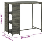 Vidaxl Bartafel Met Opbergrek 120x60x110 Cm Poly Rattan - Grijs