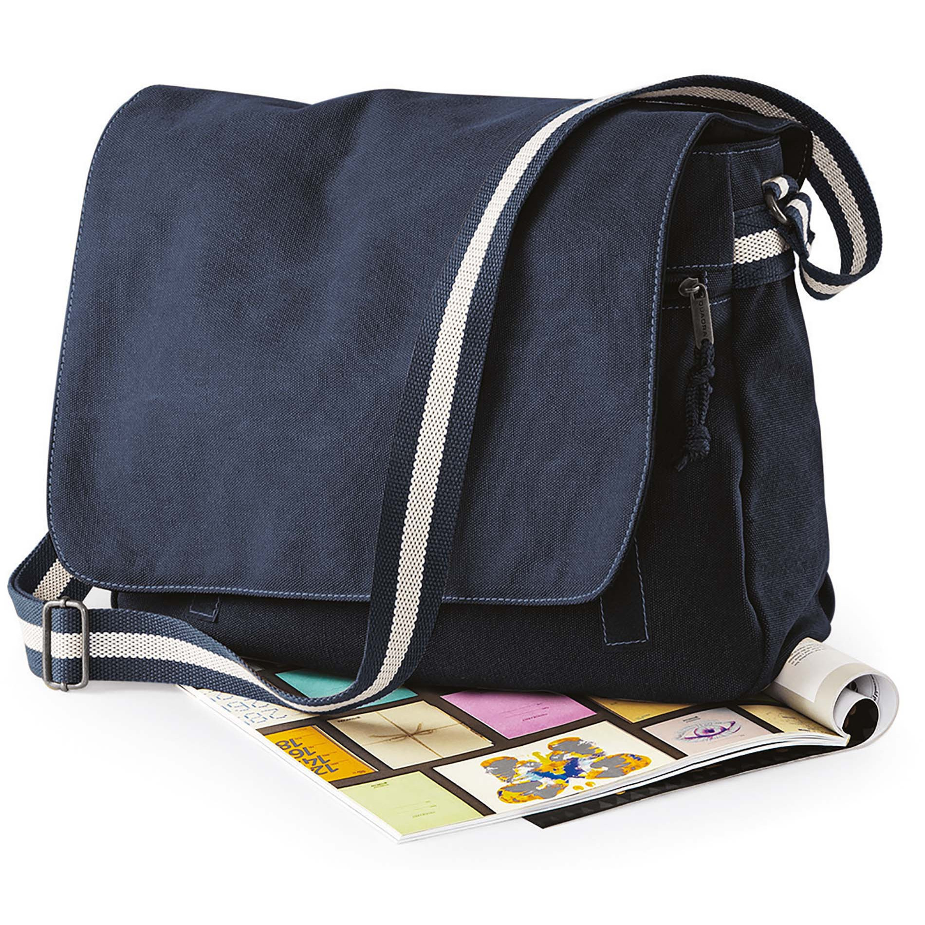 Onze schoudertas is gemaakt van gewassen canvas, wat zorgt voor een vintage uitstraling en duurzaamheid. Het donkerblauwe canvas geeft de tas een klassieke look, terwijl de verstelbare schouderband zorgt voor optimaal draagcomfort. De bronskleurige klemmen voegen een vleugje elegantie toe aan het geheel.