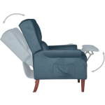 Deze verstelbare stoel is uitgevoerd in een prachtige blauwe kleur die moeiteloos past bij elk interieur. Het fluwelen materiaal geeft een luxueuze uitstraling en voegt een vleugje elegantie toe aan je woonkamer.