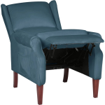 Voeg een vleugje elegantie toe aan je leefruimte met deze prachtige verstelbare stoel. Gemaakt van zacht fluweel en ondersteund door stevige houten poten, biedt deze fauteuil niet alleen duurzaamheid, maar ook ultiem comfort.