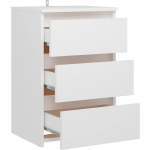 Het nachtkastje is gemakkelijk schoon te maken met een vochtige doek, waardoor het altijd zijn prachtige uitstraling behoudt. De witte kleur en het gebruik van hoogwaardig spaanplaat zorgen voor een tijdloze en elegante uitstraling die moeiteloos bij elke interieurstijl past. Met afmetingen van 40 x 35 x 62,5 cm (B x D x H) is dit nachtkastje compact genoeg om in elke slaapkamer te passen, zonder in te leveren op functionaliteit.