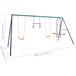 Om het nog handiger te maken, worden grondpinnen en alle noodzakelijke montageaccessoires meegeleverd. De schommelset is verkrijgbaar in een stijlvolle combinatie van blauw, groen en oranje. De afmetingen zijn 380 x 156 x 180 cm (B x D x H),met een sterke diameter van 50,8 mm voor de middenstang, 38,1 mm voor de buis van het A-frame en 25,4 mm voor de middenstang van het A-frame. Het maximale draagvermogen is 225 kg, met een maximaal gewicht van 45 kg per gebruiker. Dit speeltoestel is ergonomisch ontworpen en aanbevolen voor kinderen van 3 tot 10 jaar.