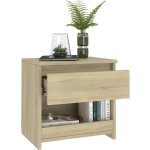 Deze nachtkastjes hebben een prachtige sonoma eikenkleurige afwerking, waardoor ze een vleugje warmte en elegantie aan je interieur toevoegen. Of je nu een moderne inrichting hebt of een meer klassieke stijl verkiest, deze kastjes passen perfect bij elke decoratiestijl. Ze zijn tijdloos, waardoor je er jarenlang plezier van zult hebben.