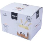 | Verpakkingsinhoud | BOSKA Tapas Fondue Bianco L, vier stijlvolle fonduevorkjes en een onderstel met donker houten accenten |