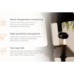 Met de Motorola Nursery app op je smartphone of tablet heb je de volledige controle over de babyfoon. Je ontvangt niet alleen live-beelden, maar kunt ook je kindje toespreken via de hooggevoelige microfoon, slaapliedjes afspelen om je kindje in slaap te sussen, screenshots en videobeelden maken om kostbare herinneringen vast te leggen, en zelfs een babydagboek bijhouden. Daarnaast kun je de camera eenvoudig bedienen en aanpassen, de kamertemperatuur monitoren en zelfs inzoomen op je kindje.