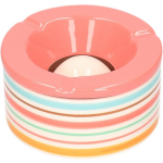 Bellatio Decorations Set Van 2x Stuks Terras Asbakken/stormasbakken Rond Keramiek 14 X 7,5 Cm Met Streep - Asbakken - Rood