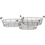 Clayre & Eef Manden (Set Van 3) 42*27*15 / 38*23*14 / 34*19*13 Cm Ijzer / Hout Rond 6y3769 - Bruin