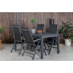 Marbella Tuinmeubelset Tafel 100x160/240cm En 4 Stoel Albany. - Zwart