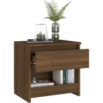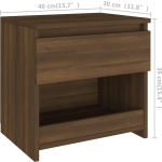 Het nachtkastje is uitgevoerd in een mooie bruineiken kleur, wat een warme en natuurlijke uitstraling geeft aan je slaapkamer. De afmetingen van het nachtkastje zijn 40 x 30 x 39 cm (B x D x H),waardoor het compact genoeg is om naast elk bed te passen.