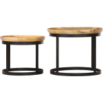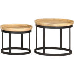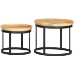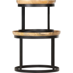 Vidaxl Bijzettafel Rond 2 St Massief Mangohout En Staal - Bruin