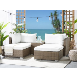 Smaakvolle Wicker Loungeset in Lichtbruin met Witte Kussens