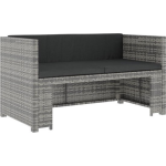 De set wordt geleverd met 1 bank, 1 bank zonder rugleuning, 1 salontafel en 2 krukken, waardoor je verschillende opstellingen kunt creëren die passen bij jouw buitenruimte. De elegante grijze poly rattan en donkergrijze kussens zorgen voor een stijlvolle uitstraling die moeiteloos past in elke tuin of terras.