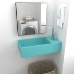 Deze ronde badkamerwastafel wordt geleverd in een trendy lichtgroene kleur, waardoor hij direct een vleugje frisheid en stijl aan elke ruimte toevoegt. Zijn afmetingen van 480 x 250 x 150 mm (L x B x H) maken hem compact en geschikt voor zowel kleine als grotere ruimtes.
