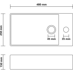Deze wastafel is voorzien van een overloopgat dat overtollig water afvoert, zodat het waterbassin niet te vol raakt. Daarnaast heeft het een kraangat waar je een mooie kraan kunt plaatsen om de wastafel compleet te maken. Het afvoergat heeft een diameter van 4,5 cm, terwijl het kraangat een diameter heeft van 35 mm.