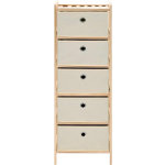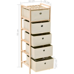 Creëer ruimte en orden je dagelijkse voorwerpen met dit elegante opbergmeubel van massief cederhout. Met 5 aparte stoffen manden biedt dit opbergrek voldoende ruimte om al je spullen netjes op te bergen. De lades zijn gemaakt van licht gekleurde stof, waardoor ze een vleugje elegantie aan je interieur toevoegen.