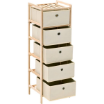 Organiseer je huis met stijlvolle opbergoplossingenCreëer ruimte en orden je dagelijkse voorwerpen met dit elegante opbergmeubel van massief cederhout. Met 5 aparte stoffen manden biedt dit opbergrek voldoende ruimte om al je spullen netjes op te bergen. De lades zijn gemaakt van licht gekleurde stof, waardoor ze een vleugje elegantie aan je interieur toevoegen.Het opbergmeubel is niet alleen functioneel, maar ook licht van ... lees meer over dit product