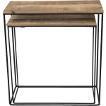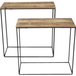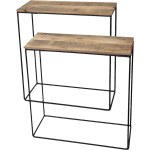 Clayre & Eef Bijzettafel (Set Van 2) 60*25*65 Cm / 55*22*56 Cm Hout / Ijzer 50307 - Bruin