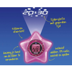 De KidiMagic Starlight projecteert de tijd op het plafond met schitterende fonkelende sterretjes en bloemen, en helpt je tegelijkertijd klokkijken door middel van gesproken tijd. Je kunt zelfs je hand bewegen om een andere kleur sfeerlicht te kiezen en zo jouw eigen persoonlijke sfeer te creëren!