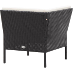 Deze 6-delige loungeset wordt geleverd met 1 salontafel, 2 middenbanken, 2 hoekbanken, 1 hocker, 5 zitkussens en 6 rugkussens. De set is verkrijgbaar in een elegante zwarte kleur en de kussens hebben een crèmewitte kleur. De afmetingen van de verschillende onderdelen zijn te vinden in de productbeschrijving. Montage is vereist.