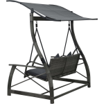 Vidaxl Schommelbank 3-zits Met Dak Poly Rattan - Grijs