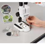 Met de Bresser Junior Microscoop kunnen kinderen op een speelse manier de wereld van optica ontdekken. Met twee ogen zien ze meer dan één, en met deze stereo-microscoop kunnen ze objecten tot maar liefst 50x vergroten.