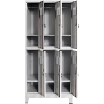 Met maar liefst 6 afzonderlijke vakken, elk voorzien van een deur, biedt deze lockerkast voldoende opslagruimte om al je spullen veilig en georganiseerd te bewaren. Elk vak is bovendien uitgerust met een handige hangstang en een naamkaarthouder, zodat je je persoonlijke items gemakkelijk kunt terugvinden.