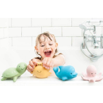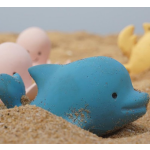 Tikiri : Mijn Eerste Oceaandiertje / Dolfijn 6cm, In Natuurlijk Rubber, Met Belletje, Met Hangkaart, 0+ - Blauw