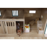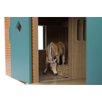 De stal is voorzien van verschuifbare voerbakken, zodat je jouw paarden van voer kunt voorzien (niet inbegrepen). Daarnaast is er ook een wasplaats waar je jouw paarden kunt verzorgen en schoonmaken. Voor al je accessoires is er voldoende opbergruimte, zodat je alles wat je nodig hebt binnen handbereik hebt. Het dak van de stal kan geopend worden, waardoor je gemakkelijk binnenin kunt spelen en je fantasie de vrije loop kunt laten gaan.