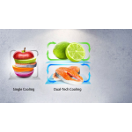 Met het Metal-Tech Cooling-systeem geniet je niet alleen van een strak design, maar ook van een gelijkmatige temperatuurverdeling en energiebesparing wanneer je de koelkastdeur opent. Dankzij Dual-Tech Cooling worden geuren tussen het koel- en vriesgedeelte voorkomen en blijven verse producten langer vers door een optimale luchtvochtigheidsgraad. Multi Air Flow verdeelt de koude lucht via meerdere ventilatieopeningen door de koelkast, waardoor de temperatuur op elk schap constant blijft.