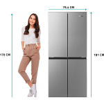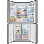De Hisense RQ563N4SI2 is een vrijstaande Amerikaanse koelkast die het beste van beide werelden biedt: ruimte en gebruiksgemak. Met 4 deuren is deze koelkast bijzonder eenvoudig in het gebruik. Het koelgedeelte biedt een indrukwekkende capaciteit van 290 liter, waardoor je moeiteloos grote hoeveelheden voedsel kunt opbergen. In het onderste gedeelte bevindt zich de vriezer, met een capaciteit van 142 liter.