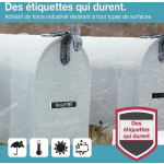Wat deze labels echt speciaal maakt, is hun waterbestendigheid. Ze zijn bestand tegen vochtigheid, bevriezing, huishoudelijke schoonmaakmiddelen, hitte en UV-licht. Dit betekent dat ze er altijd professioneel en leesbaar blijven uitzien, zelfs in veeleisende omgevingen.