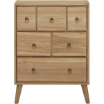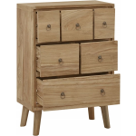Deze ladekast, gemaakt van massief teakhout, is een echt pronkstuk en geeft jouw interieur een klassieke uitstraling met een vleugje vintage charme. Het hoogwaardige materiaal en de rustieke afwerking maken deze kast een tijdloze toevoeging aan elke ruimte.