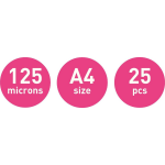 Onze lamineerfolie is gemaakt van ultra premium kwaliteitsmateriaal dat lang meegaat en bestand is tegen slijtage. Met een dikte van 125 micron biedt het een stevige bescherming voor uw documenten. Elke verpakking bevat 25 hoezen, zodat u voldoende voorraad heeft om aan al uw lamineerbehoeften te voldoen.