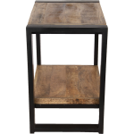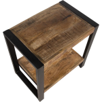 Voeg een vleugje stijl toe aan je interieur met dit prachtige bruine kastje van mangohout. Met zijn strakke ontwerp en zwarte metalen poten en handvat is dit kastje een echte blikvanger. De grote opening biedt de perfecte plek om iets leuks in te plaatsen, zoals een plant of beeld, maar het is ook geschikt als bijzettafel.